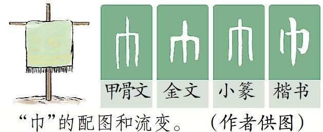 我們(men) 再進一步追溯“巾”的本義(yi) :它是個(ge) 象形字,甲骨文像一條兩(liang) 頭下垂的織物,是佩戴在衣服上的絲(si) 巾,既用來裝飾,又可以擦汗、擦東(dong) 西。帶“巾”的字一般與(yu) 布帛、服飾、紡織品有關(guan) ,比如麻布的“布”、財帛的“帛”、帽子的“帽”、腰帶的“帶”、手帕的“帕”、旗幟的“幟”、窗簾的“簾”等。