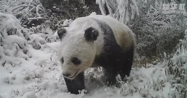 四川千佛山國家級自然保護區野生大熊貓(圖片來源:新華社視頻截圖)
