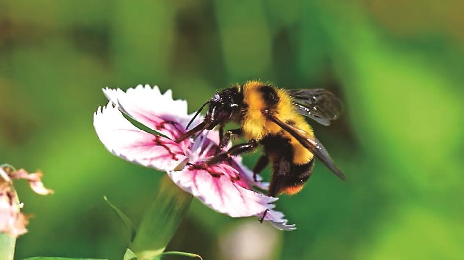 圖為(wei) 三條熊蜂訪問石竹花。黃家興(xing) 攝