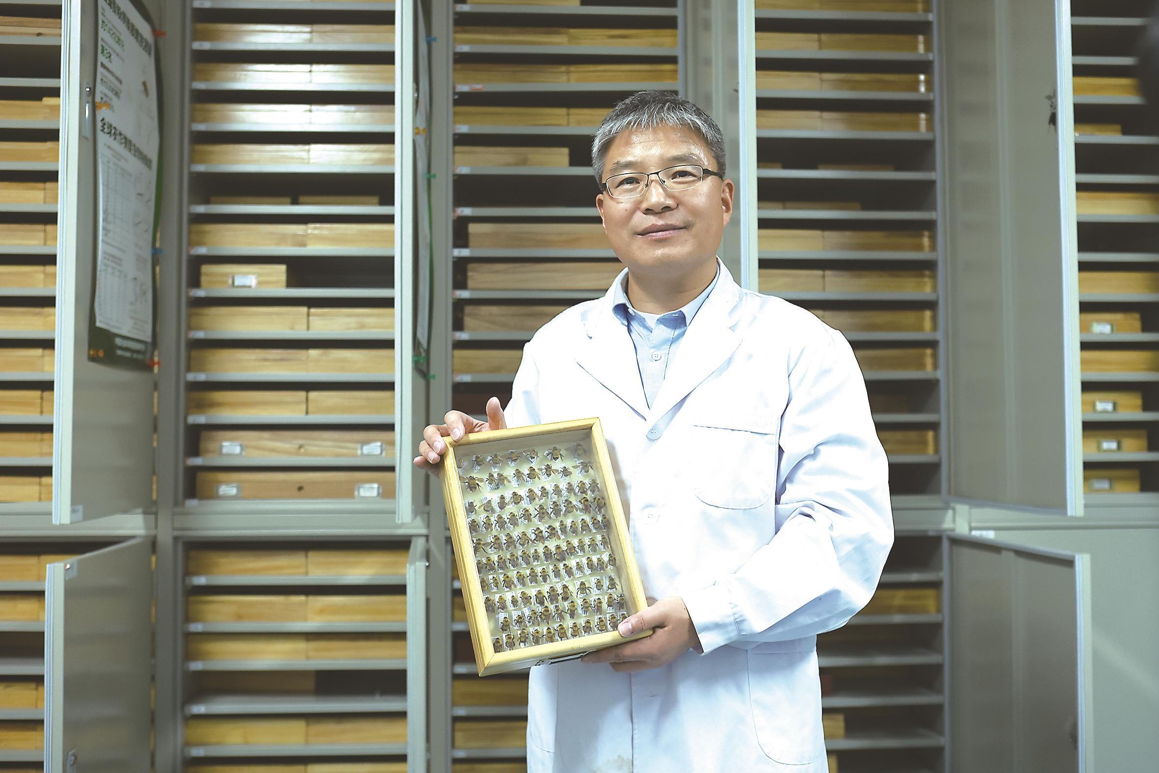 圖為(wei) 安建東(dong) 在熊蜂標本室。王武 攝
