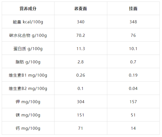 蕎麥麵和掛麵的部分營養(yang) 對比