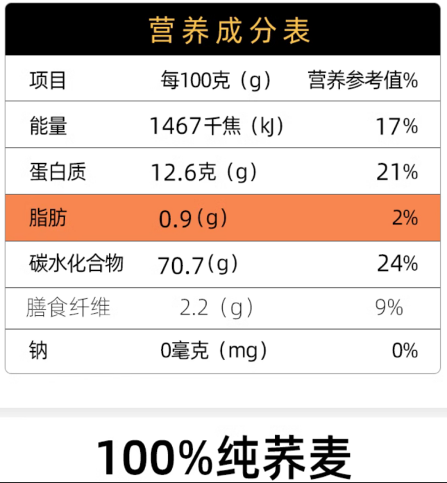 如果買(mai) 不到 100%的純蕎麥麵,那就看蕎麥粉在配料表的位置,排在第一位的說明含量比較高。同時也要注意營養(yang) 成分表中的鈉含量,選擇鈉含量低的一款,避免攝入過多的鈉,對血壓不利。比如下圖這款鈉含量高達 900mg/100g,吃 100g 這樣的蕎麥麵條,就會(hui) 攝入近 2.3g 鹽,占《中國居民膳食指南》鹽最高建議攝入量的近 50%呢。