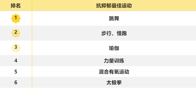 研究納入包括 14170 名受試者,對每項試驗進行評估並記錄運動的類型、強度和頻率。同時,參與(yu) 者的性別、年齡、抑鬱水平、組間差異等也被考慮在內(nei) 。根據運動表現出對抑鬱的治療效果,選出了對焦慮抗抑鬱最好的幾種運動: