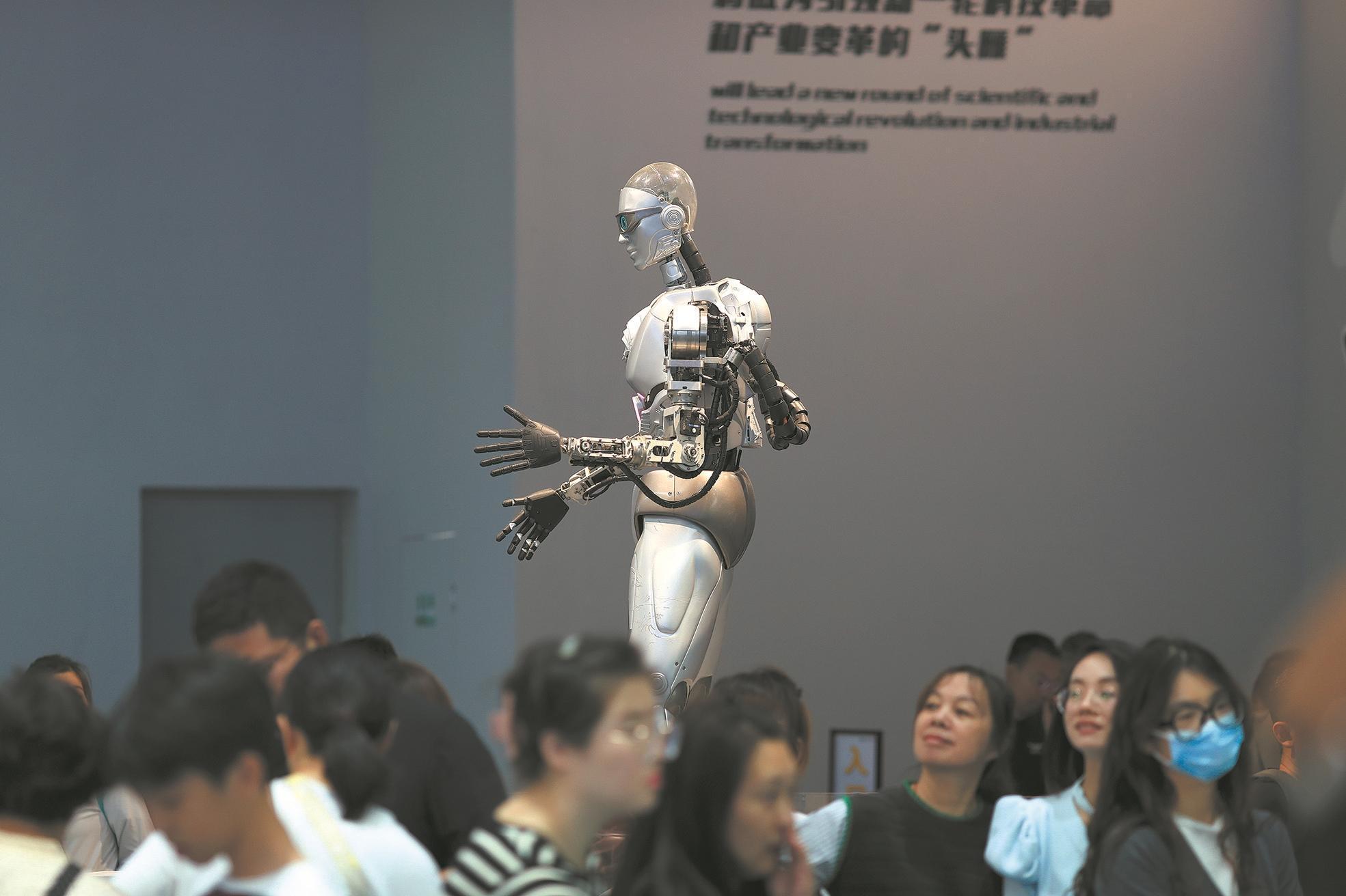 2024年9月16日,中國科技館,體(ti) 感機器人通過非接觸的方式與(yu) 觀眾(zhong) 進行互動。季春紅 攝