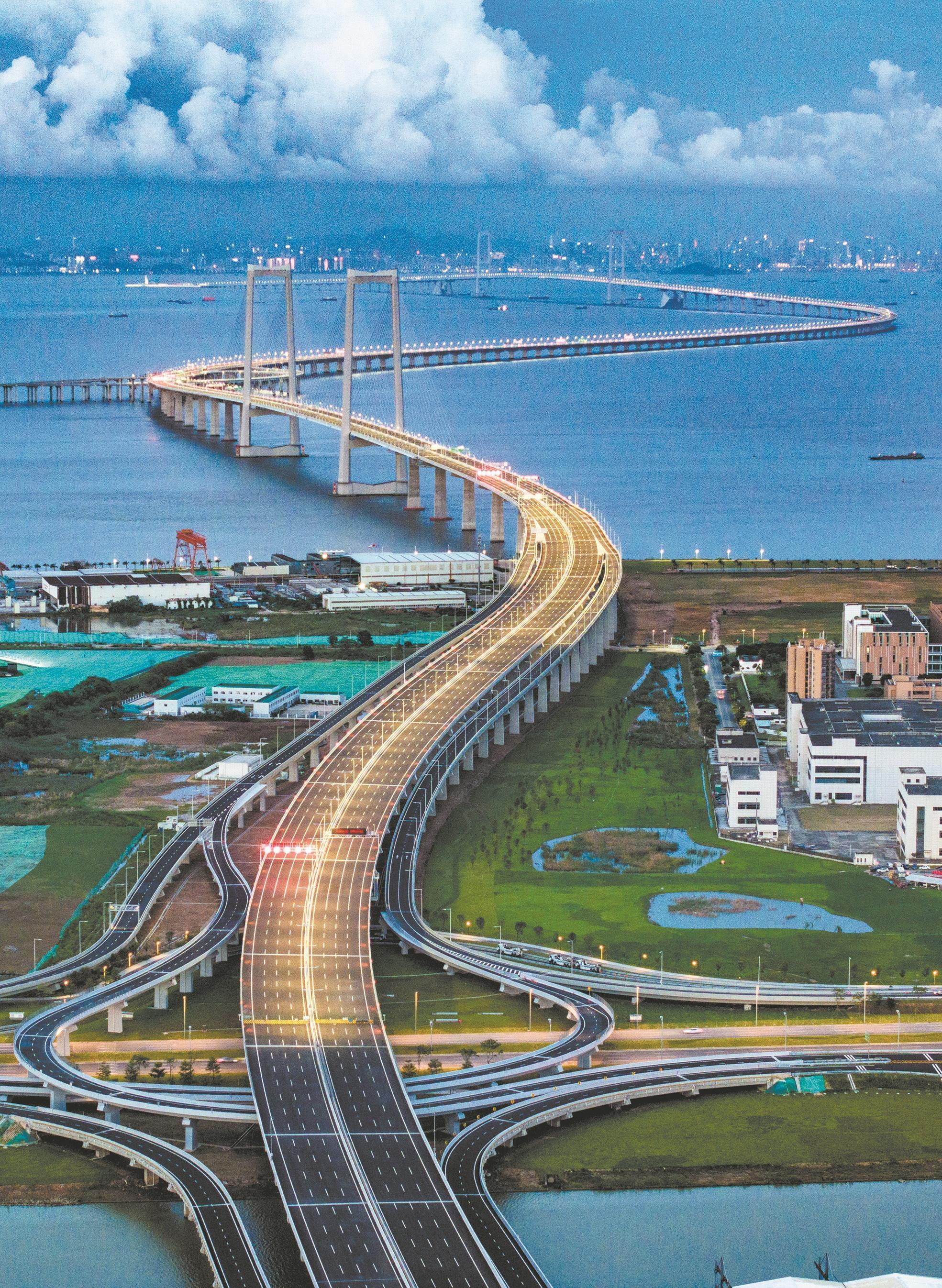 2024年6月27日,華燈初上時的深中通道。