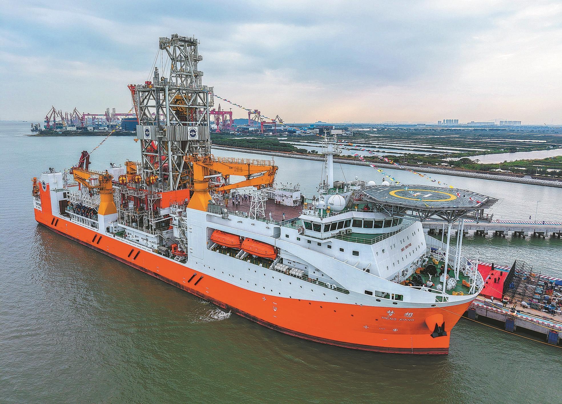 2024年11月17日,我國自主設計建造的首艘大洋鑽探船“夢想”號在廣州正式入列。新華社記者 劉大偉(wei) 攝