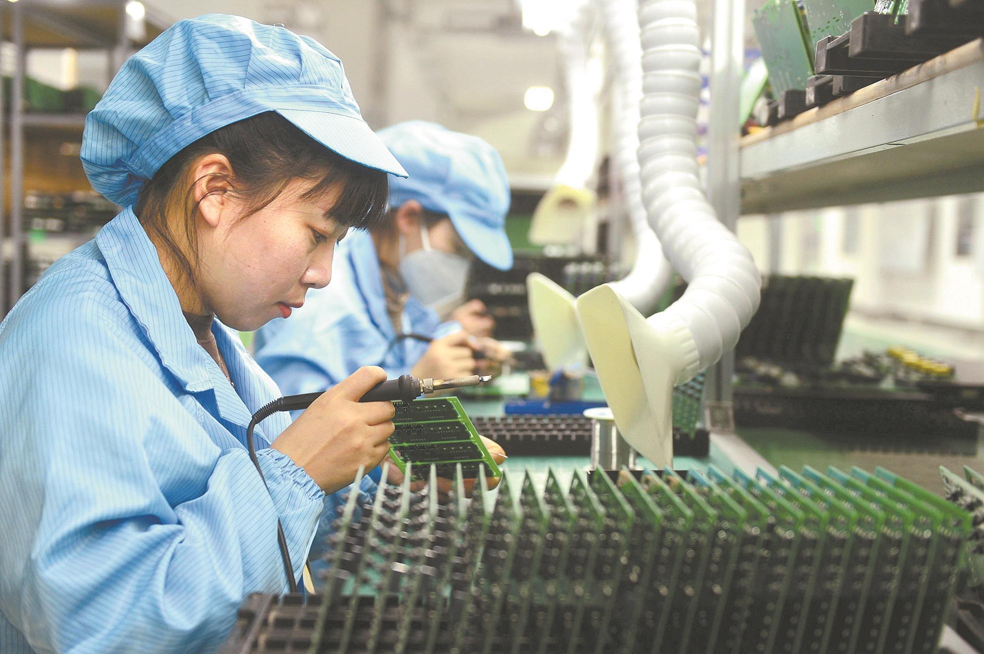 2024年1月10日,河北省固安縣一家集成電路企業(ye) 工人在生產(chan) 車間工作。新華社記者 王曉 攝