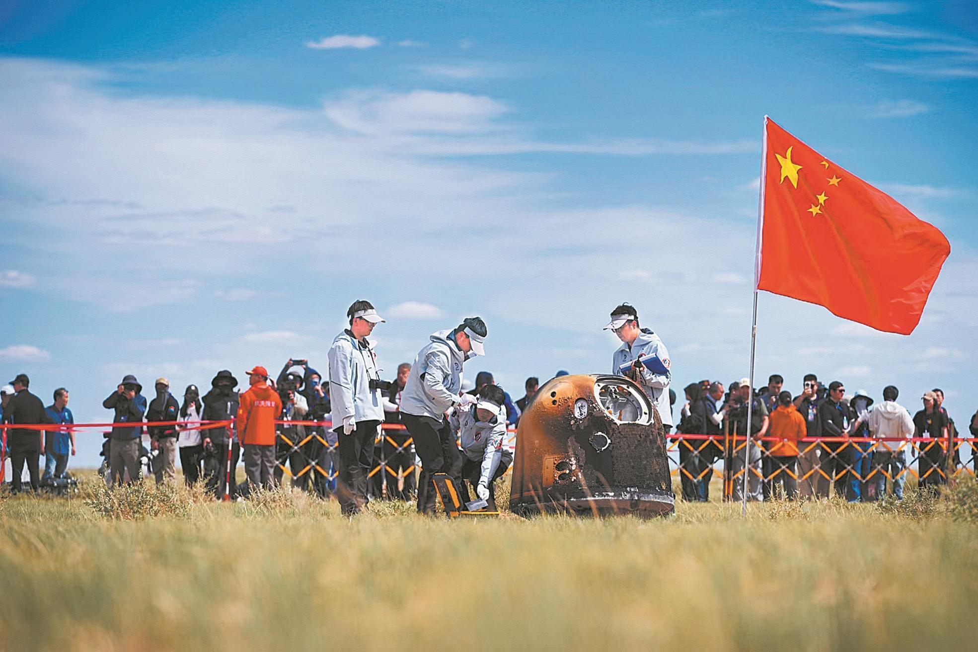 2024年6月25日,嫦娥六號返回器準確著陸於(yu) 內(nei) 蒙古四子王旗,實現世界首次月球背麵采樣。
