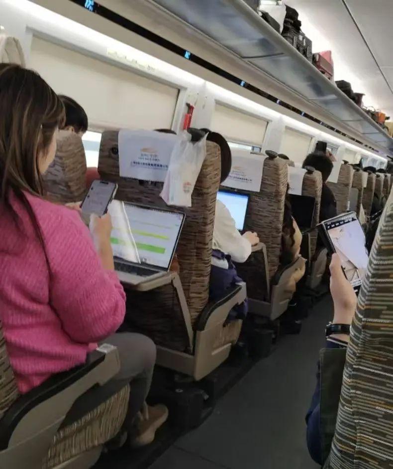 以前乘客為(wei) 了打發動輒十幾個(ge) 小時的旅途,要帶很多吃的喝的、玩的用的;現在列車上幾乎都配備了電源插座,用電子設備追番看小說,飯不吃都行。