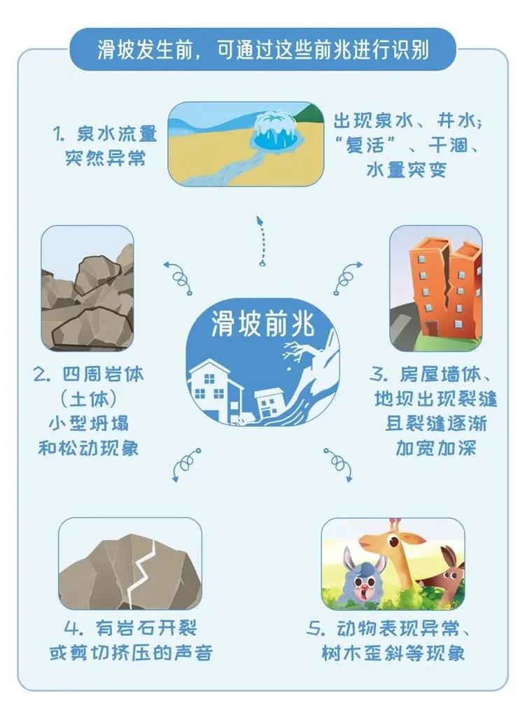 首先,山體(ti) 滑坡前常有前兆,如斷流多年的泉水突然複流、泉水突然幹涸、岩石開裂或發出被剪切擠壓的聲音、動植物出現異常等。