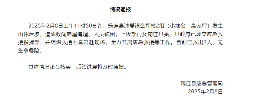 2月8日11時50分許,四川宜賓市筠連縣沐愛鎮金坪村發生山體(ti) 滑坡,截至8日17時,已造成10戶民房被掩埋、30餘(yu) 人失聯。