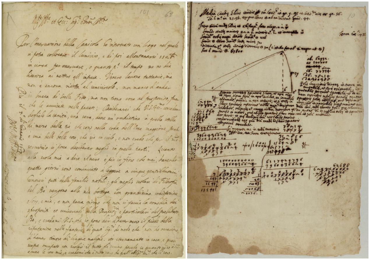 左:卡斯特利寫(xie) 給伽利略的信,其中提到他發現開陽本身就是一個(ge) 雙星係統。右:伽利略的觀測記錄和計算。圖像來源:參考資料7