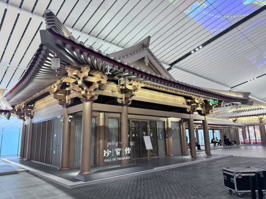 2月20日,西安鹹陽國際機場T5航站樓正式投運,T5航站樓的亮點之一,當屬全球首個(ge) 設置在機場裏的在地文物展示博物館。據了解,這座博物館總麵積約6400平方米,展出的文物以西安機場曆次建設出土的文物為(wei) 主。在航站樓內(nei) 部,還可以看到“以鋁代木”打造出的規模宏大的室內(nei) 仿古建築群,既有廡殿頂、歇山頂等各種古建屋麵形製,又有鬥拱、飛簷等各類裝飾構件,一眼望去驚豔無比。