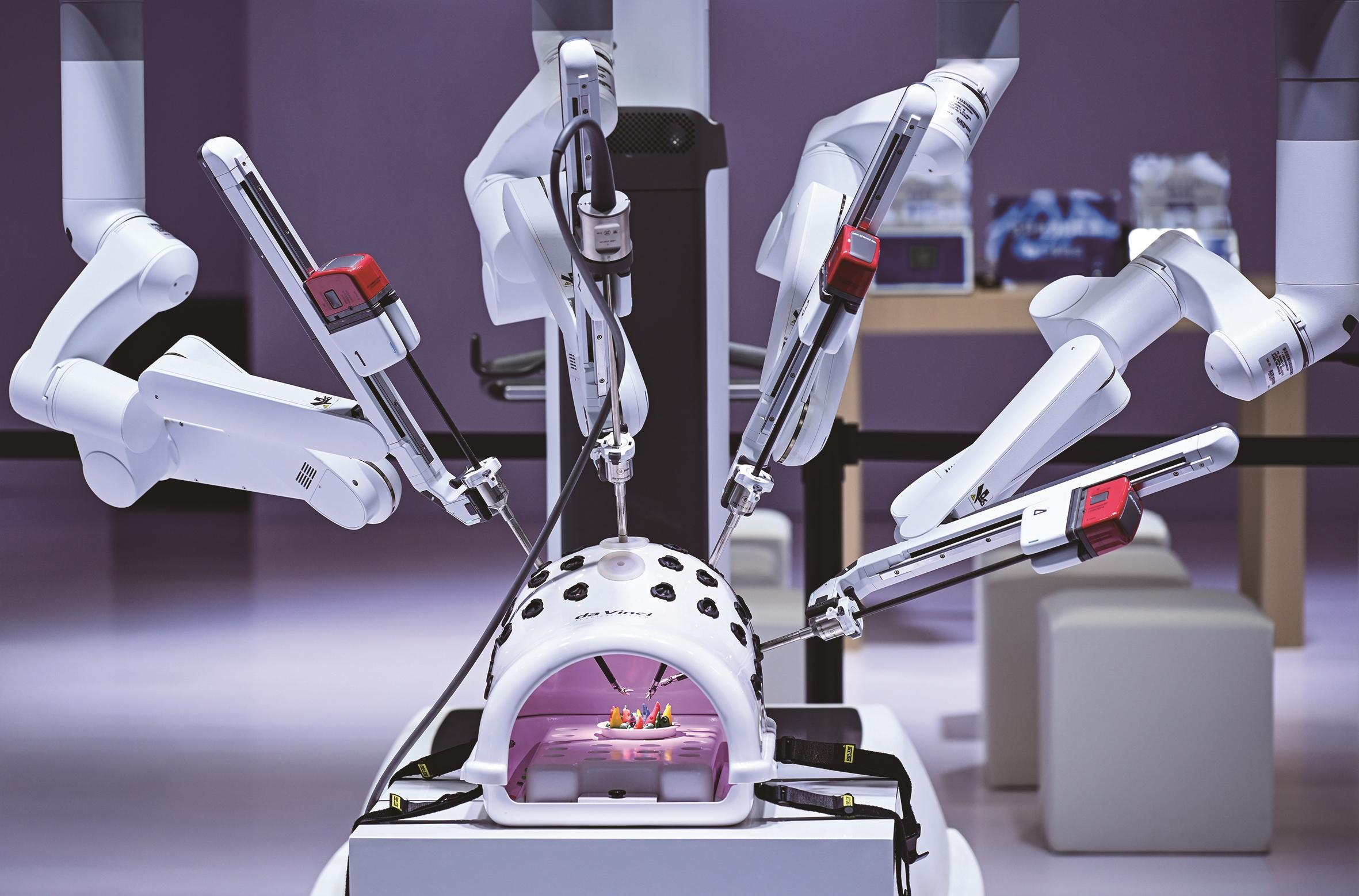 ▲圖為(wei) 中國醫學裝備展覽會(hui) 上,手術機器人正在現場演示。
