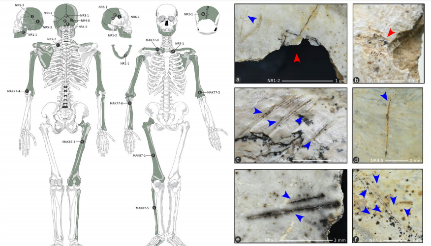 古人類顱骨的切割痕跡。圖片來源:參考文獻[8]