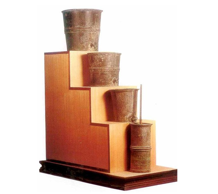 我國西周時期就出現了漏刻。早期漏刻大多使用單隻漏壺,滴水速度受到壺中液位高度的影響,液位高,滴水速度較快,液位低,滴水速度較慢。為(wei) 解決(jue) 這一問題,古人進一步創製出多級漏刻裝置。所謂多級漏刻,即使用多隻漏壺,上下依次串聯成為(wei) 一組,每隻漏壺都依次向其下一隻漏壺中滴水。這樣一來,對最下端的受水壺來說,其上方的一隻泄水壺因為(wei) 有同樣速率的來水補充,壺內(nei) 液位基本保持恒定,其自身的滴水速度也就能保持均勻。