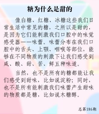 小朋友們,你們喜歡吃糖嗎?你們知道糖為什麽是甜的嗎?
