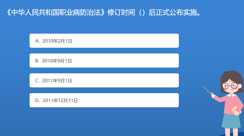 科普星空体育官网入口网站問答:《中華人民共和國職業病防治法》修訂時間()後正式公布實施。