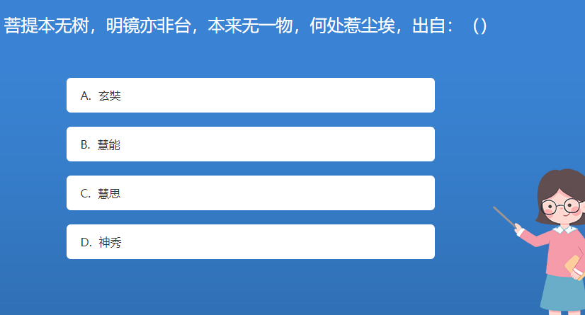 科普星空体育官网入口网站問答:菩提本無樹,明鏡亦非台,本來無一物,何處惹塵埃,出自:()