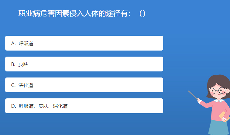 科普星空体育官网入口网站問答:職業病危害因素侵入人體的途徑有:()
