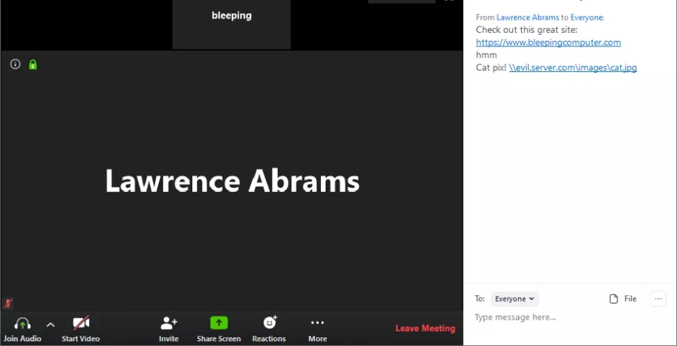 大東:據了解,使用該視頻會議軟件發送聊天消息時,發送的所有 URL 都會經過轉換,方便其它聊天者點擊,並在默認瀏覽器中打開。有安全研究員發現,該視頻會議軟件客戶端竟然將Windows 網絡的 UNC 路徑也換成了這種可單擊的鏈接。