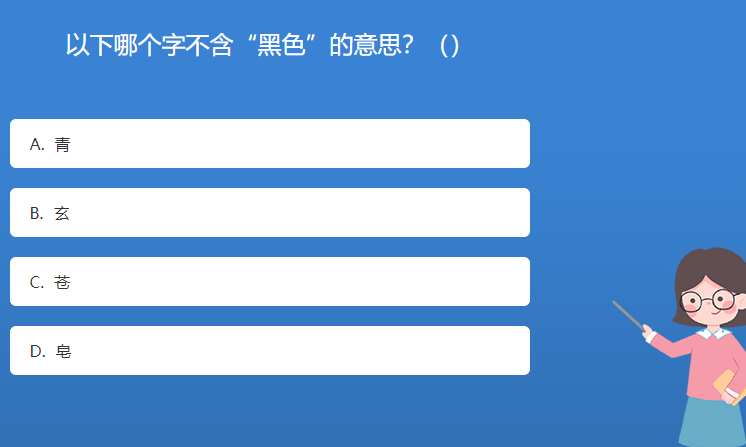 科普星空体育官网入口网站問答:以下哪個字不含“黑色”的意思?()