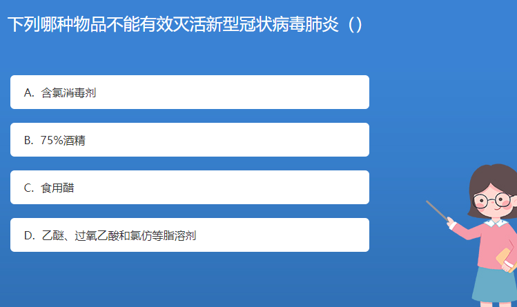 科普星空体育官网入口网站問答:下列哪種物品不能有效滅活新型冠狀病毒肺炎()