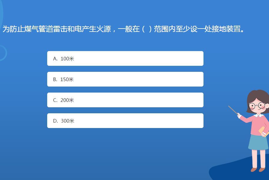 科普星空体育官网入口网站問答:為防止煤氣管道雷擊和電產生火源,一般在()範圍內至少設一處接地裝置。