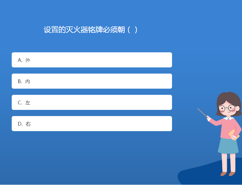 科普星空体育官网入口网站問答:設置的滅火器銘牌必須朝()
