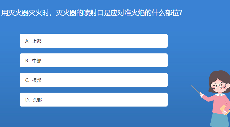 科普星空体育官网入口网站問答:用滅火器滅火時,滅火器的噴射口是應對準火焰的什麽部位?