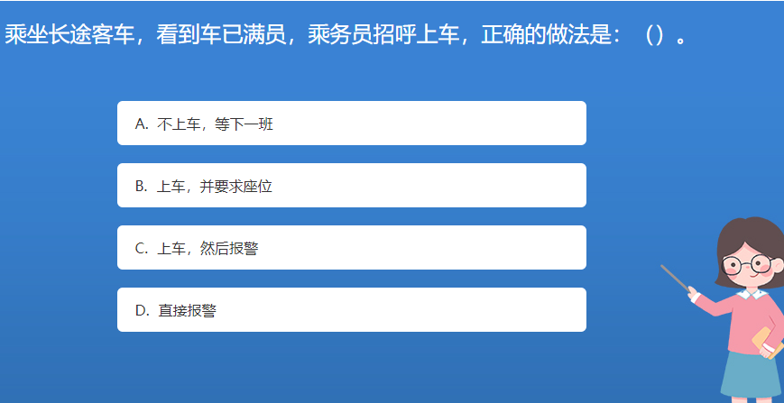 科普星空体育官网入口网站問答:乘坐長途客車,看到車已滿員,乘務員招呼上車,正確的做法是:()