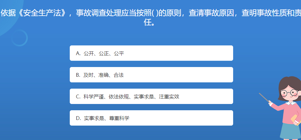 科普星空体育官网入口网站問答:依據《安全生產法》,事故調查處理應當按照( )的原則,查清事故原因,查明事故性質和責任。