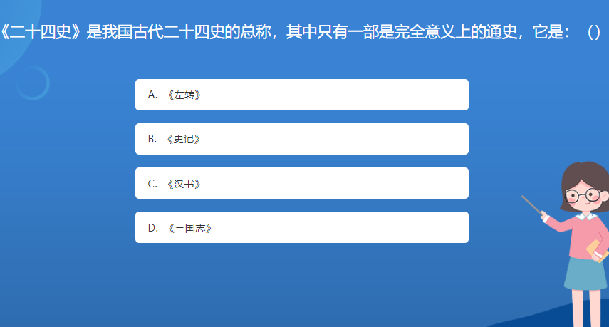科普星空体育官网入口网站問答:《二十四史》是我國古代二十四史的總稱,其中隻有一部是完全意義上的通史,它是:()