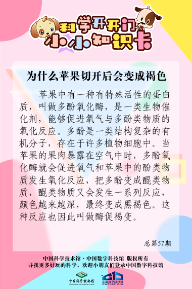 小朋友們(men) ,你們(men) 喜歡吃蘋果嗎?你們(men) 觀察過切開後的蘋果嗎?有沒有發現蘋果被切開後靜置一段時間就變成了褐色,這是為(wei) 什麽(me) 呢?