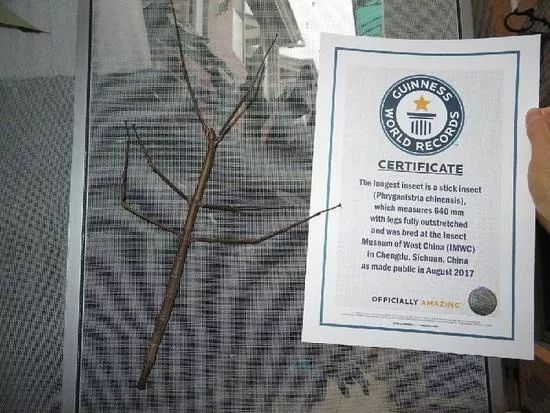 6厘米至24厘米間,而中國巨竹節蟲身體長度達到36.1厘米,足全長包括在內能超過62.4 厘米。比倫敦自然曆史博物館過去宣布發現的世界最長竹節蟲全長還要長5.7厘米,而身體則比前者長0.4厘米。因此吉尼斯世界紀錄將其認證為“新的世界最長昆蟲種類”。