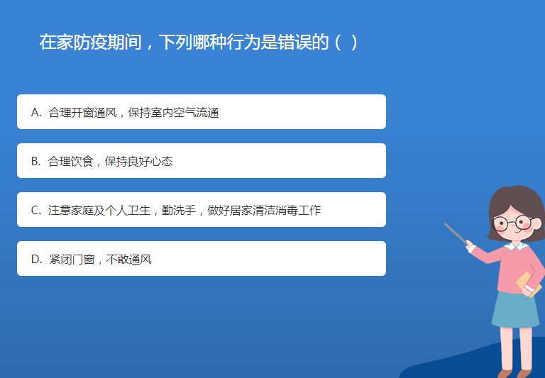 科普星空体育官网入口网站問答:在家防疫期間,下列哪種行為是錯誤的()