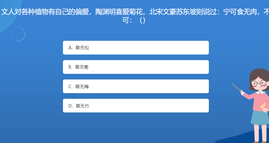 科普星空体育官网入口网站問答:文人對各種植物有自己的偏愛,陶淵明喜愛菊花,北宋文豪蘇東坡則說過:寧可食無肉,不可:()