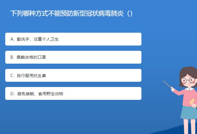 科普星空体育官网入口网站問答:下列哪種方式不能預防新型冠狀病毒肺炎()