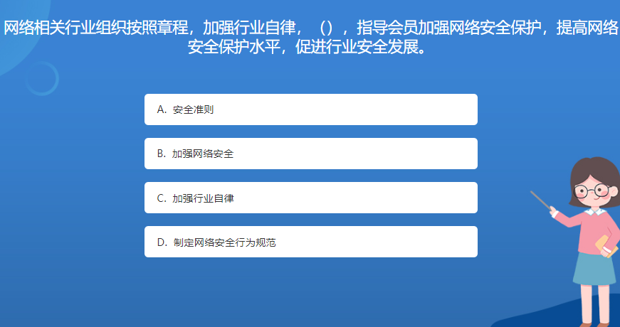 科普星空体育官网入口网站問答:網絡相關行業組織按照章程,加強行業自律,(),指導會員加強網絡安全保護,提高網絡安全保護水平,促進行業安全發展。