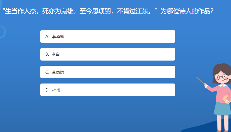 科普星空体育官网入口网站問答:“生當作人傑,死亦為鬼雄,至今思項羽,不肯過江東。”為哪位詩人的作品?