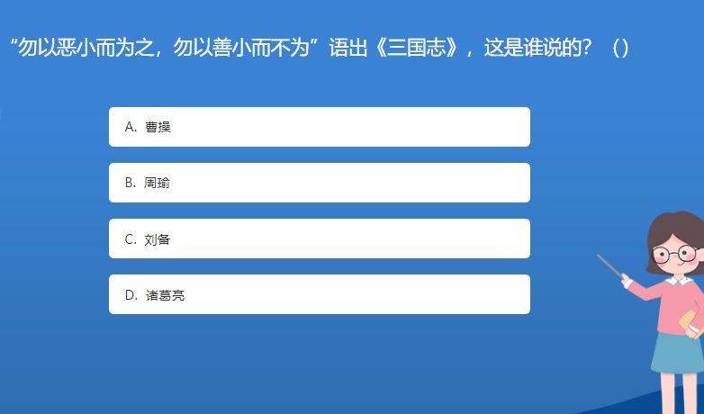 科普星空体育官网入口网站問答:“勿以惡小而為之,勿以善小而不為”語出《三國誌》,這是誰說的?()