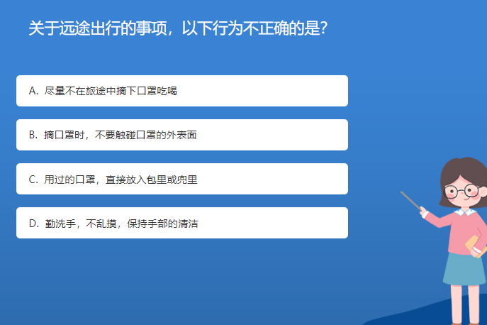科普星空体育官网入口网站問答:關於遠途出行的事項,以下行為不正確的是?