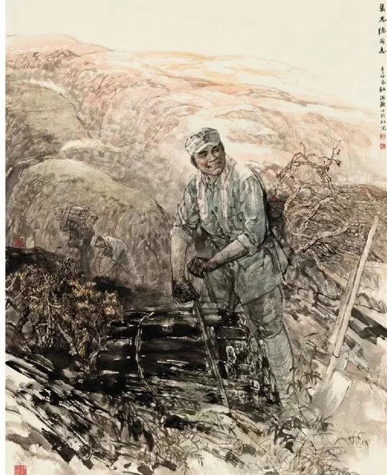 張思德這個(ge) 題材杜滋齡從(cong) 上世紀60年代就開始畫,為(wei) 了創作好這個(ge) 題材,曾數次到陝北,在張思德當年工作過的地方體(ti) 驗生活,訪問過張思德的戰友,搜集素材。