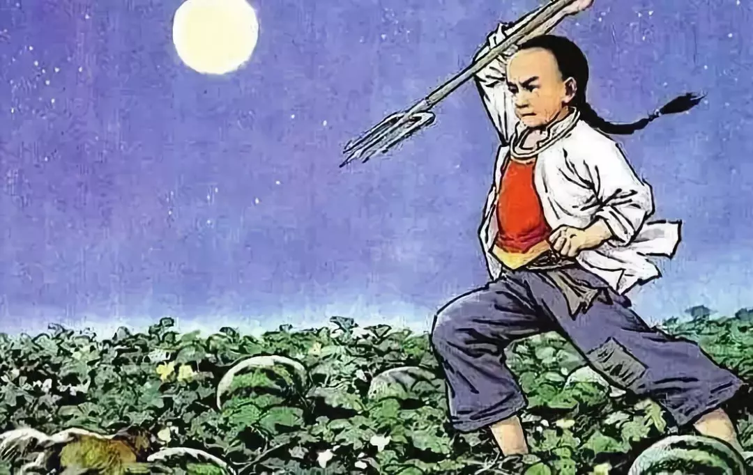 像戴著銀項圈在月光下刺猹的《少年閏土》