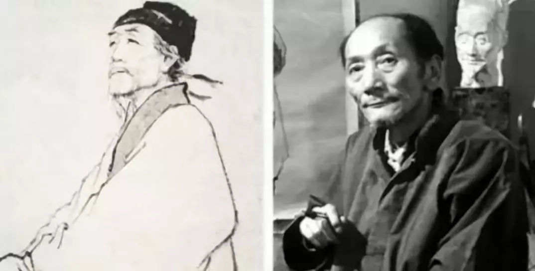 被不少人惡搞的《杜甫像》,作者為(wei) 水墨人物畫一代宗師蔣兆和。據說,蔣兆和創作這幅畫的時候,人物畫作原型無從(cong) 參考,無奈之下他參照自己的樣子畫出了《杜甫像》。乍一看,還真挺像的……