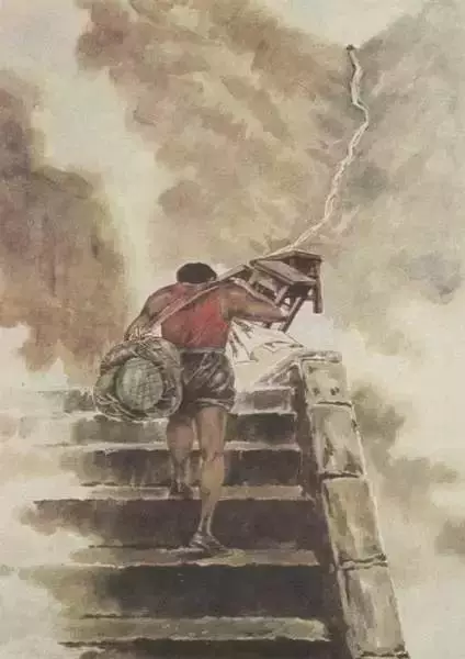 這幅工筆重彩的武鬆打虎圖其實是連環畫《武鬆打虎》中的一張,作者是著名連環畫大師劉繼卣。