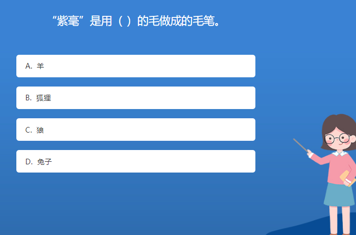 科普星空体育官网入口网站問答:“紫毫”是用( )的毛做成的毛筆。