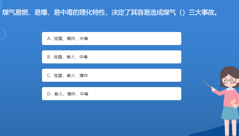 科普星空体育官网入口网站問答:煤氣易燃、易爆、易中毒的理化特性,決定了其容易造成煤氣()三大事故。