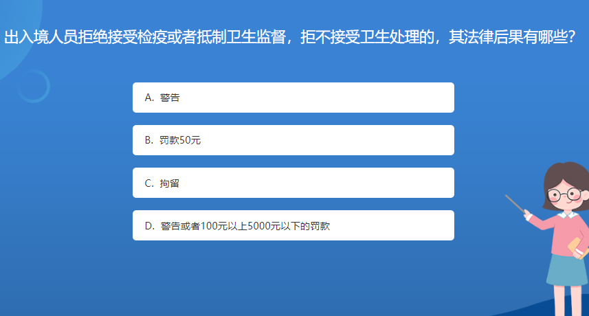 科普星空体育官网入口网站問答:出入境人員拒絕接受檢疫或者抵製衛生監督,拒不接受衛生處理的,其法律後果有哪些?
