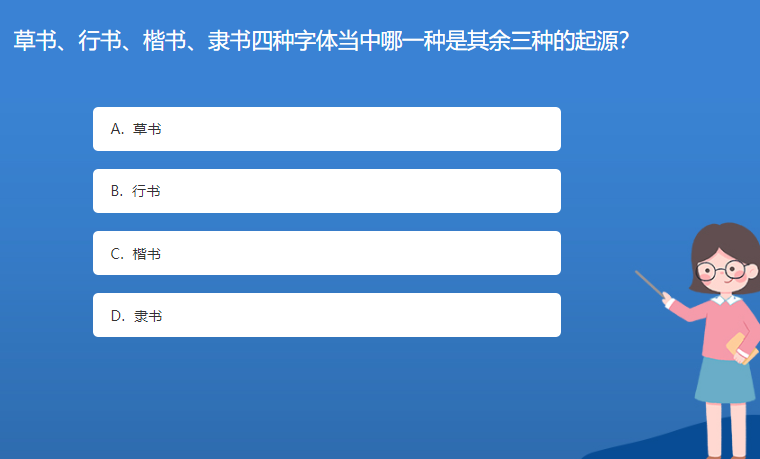 科普星空体育官网入口网站問答:草書、行書、楷書、隸書四種字體當中哪一種是其餘三種的起源?